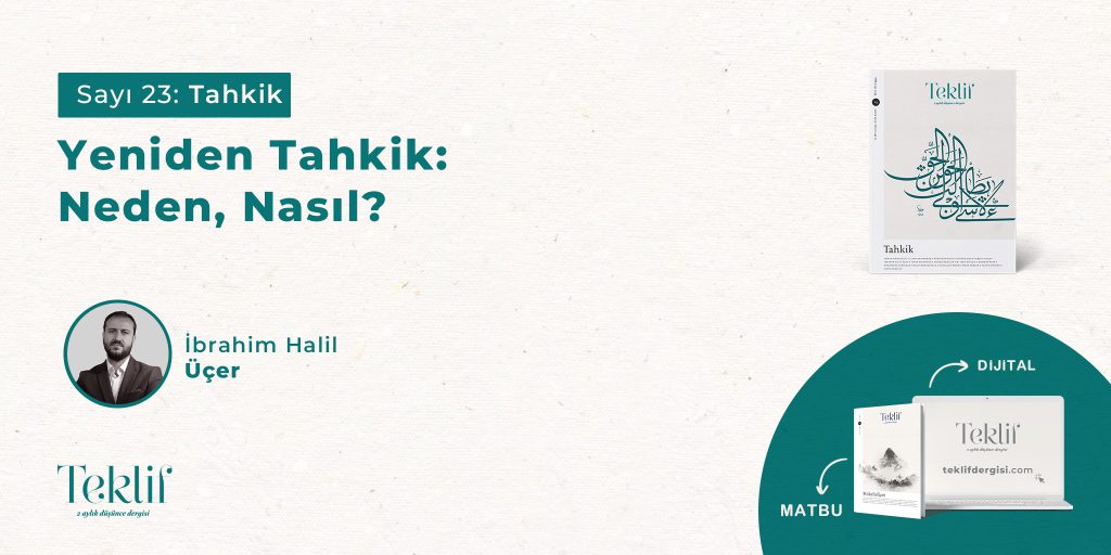 Tahkîk kelimesi, İslam düşünce tarihinde daha ziyade Fahreddin Râzî ve sonrasında yaygın olarak kullanılan hatta “muhakkikler çağı” denilmeyi hak edecek şekilde döneme adını veren bir yöntemi ifade eder. Tehânevî’nin müteahhirûn dönem kaynaklarına dayanarak hazırladığı Keşşâfu ıstılâhâti’l–funûn ve’l–ulûm adlı eserinde “tahkik ehli şöyle der”, “bunun tahkiki şudur” ve “meselenin tahkiki şudur” gibi kalıp ifadelerde tahkik kelimesi […]